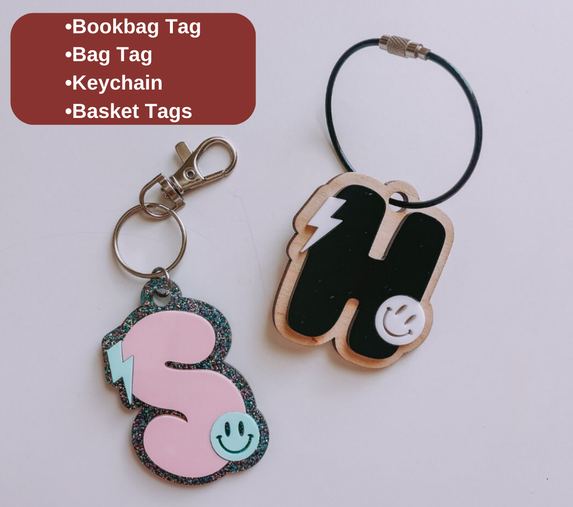 Letter Bag Tag - Smiley Face & Lightning Bolt